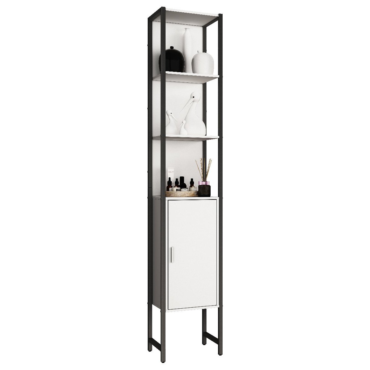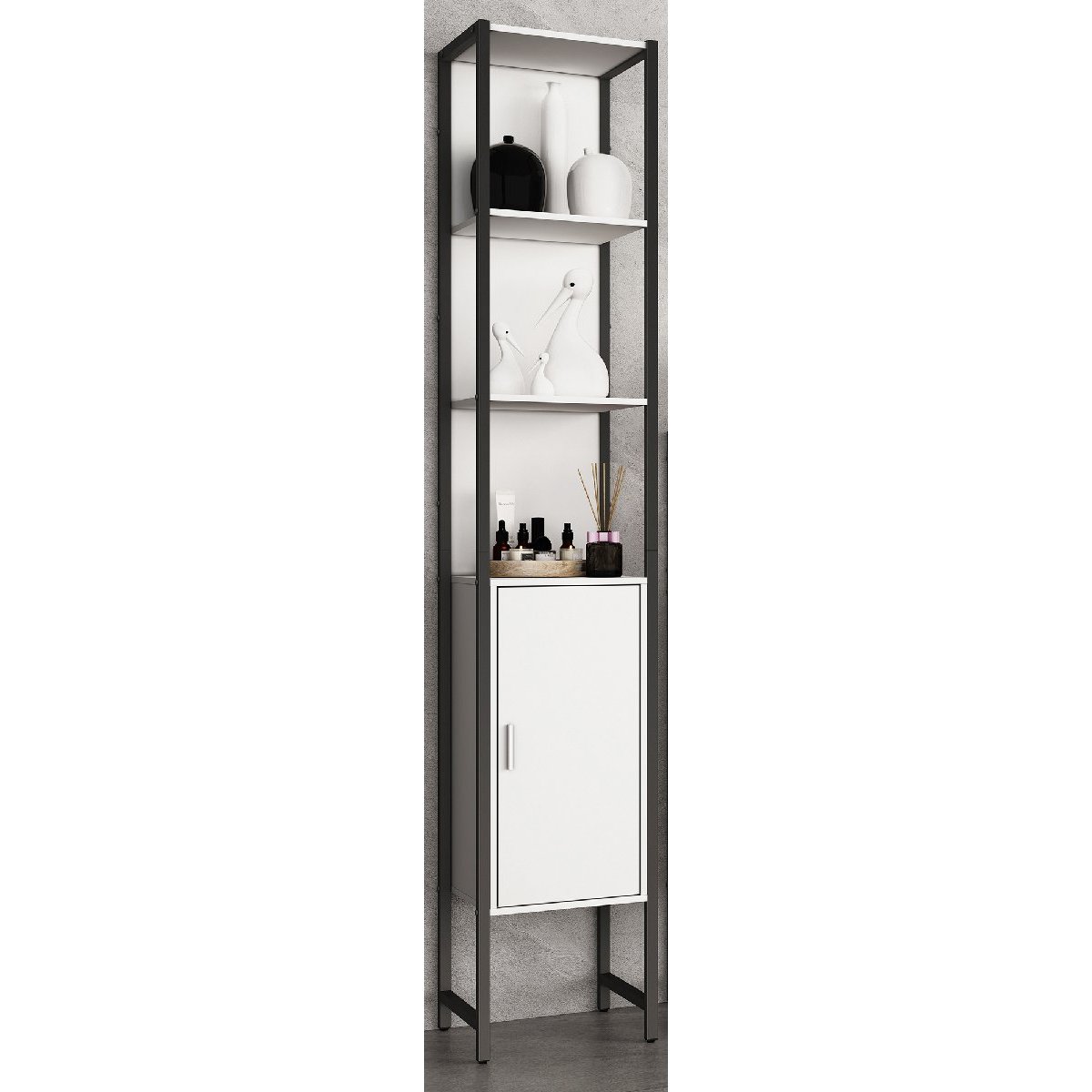 Hlavní vlastnosti: - Rozměry cca v. 185 x š. 33 x h. 30 cm - Tři otevřené police pro rychlý přístup - Jedna velká dvířka s výklopnými dveřmi a dvěma přihrádkami za nimi - Nadčasový design v industriálním stylu Nábytek se vyznačuje nadčasovým a jednoduchým designem, díky kterému bude krásným poutavým prvkem v každé koupelně. Lze jej kdykoli rozšířit, protože ostatní kusy řady „VCM Edino“ nabízejí širokou škálu možných kombinací. Od 70. let 20. století se VCM specializuje na design, výrobu a distribuci nábytku s férovým poměrem cena/výkon a již zkrášlil miliony domácností.Doplňkové parametry