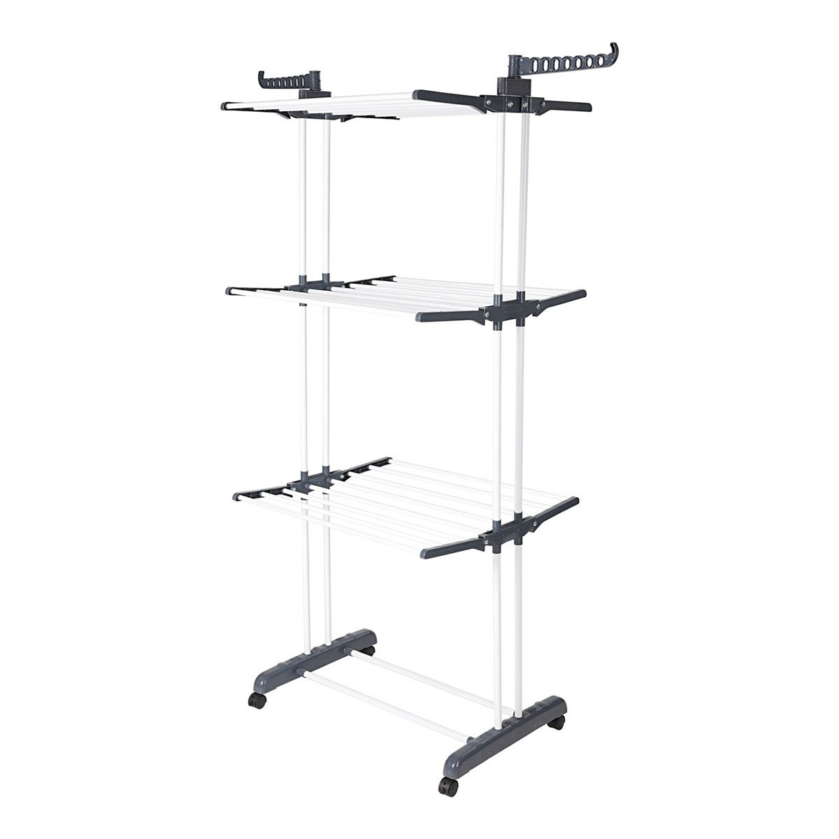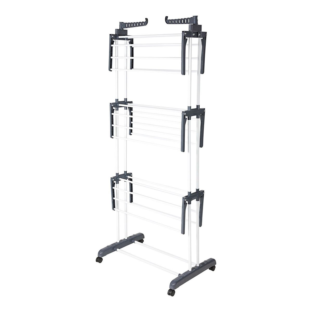 Věžový sušák Vario otevírá novou dimenzi v sušení prádla! Díky svému prostorově úspornému a skládacímu provedení stále nabízí velkorysý prostor pro vaše prádlo na 6 rozkládacích úrovních. Další 2 výklopná ramínka výrazně rozšiřují možnosti zavěšení.