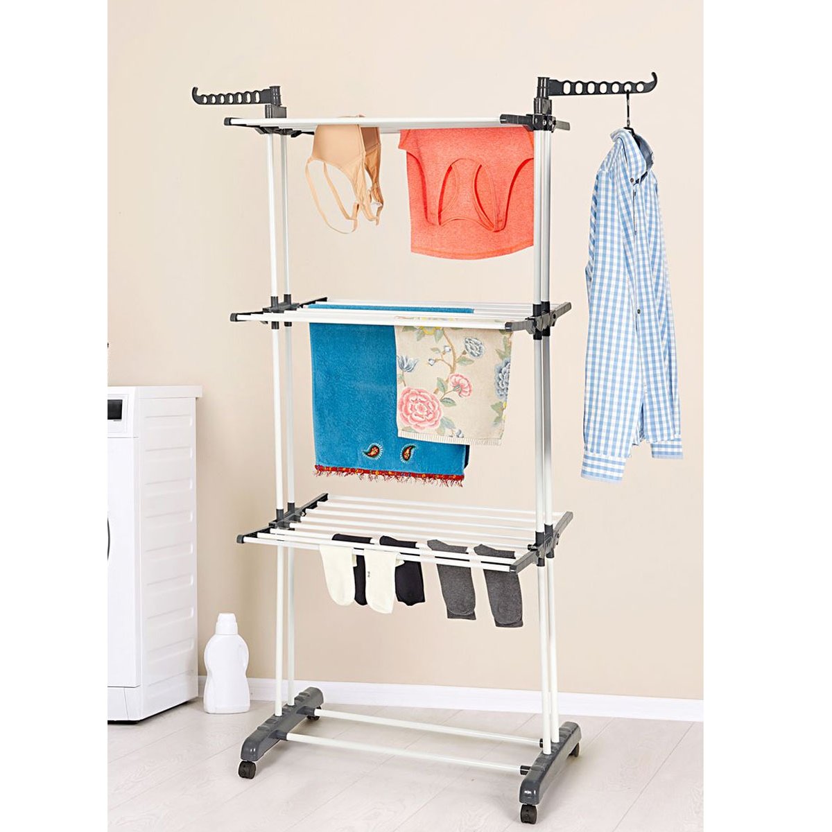 Ať už v bytě, na balkoně nebo na zahradě – tato sušička je flexibilní a multifunkční. Po použití jej lze kompaktně složit a uložit pro úsporu místa