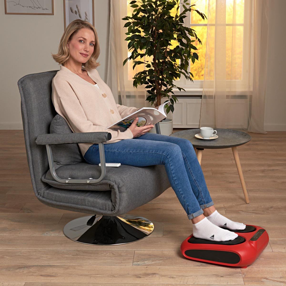 Po dlouhém dni oceníte uklidňující masáž nohou. Rotující masážní hlavice přístroje Java stimulují a osvěžují nohy. K dispozici jsou 4 programy, které pohodlně ovládáte pomocí dálkového ovladače. Měkké silikonové podložky pod chodidla jsou odnímatelné a snadno se čistí.