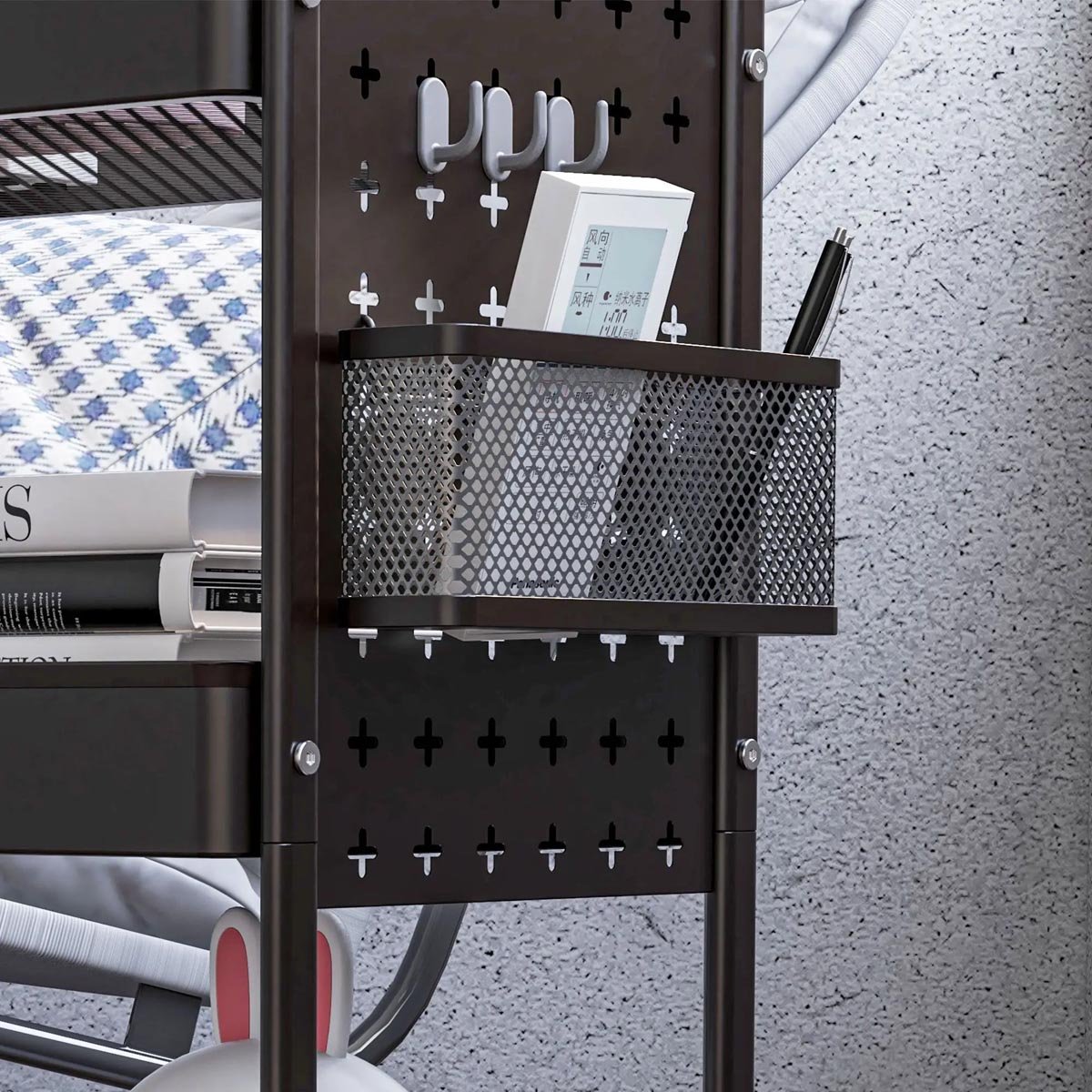 - 2 závěsné košíky a 6 háčků lze podle potřeby připevnit vlevo nebo vpravo