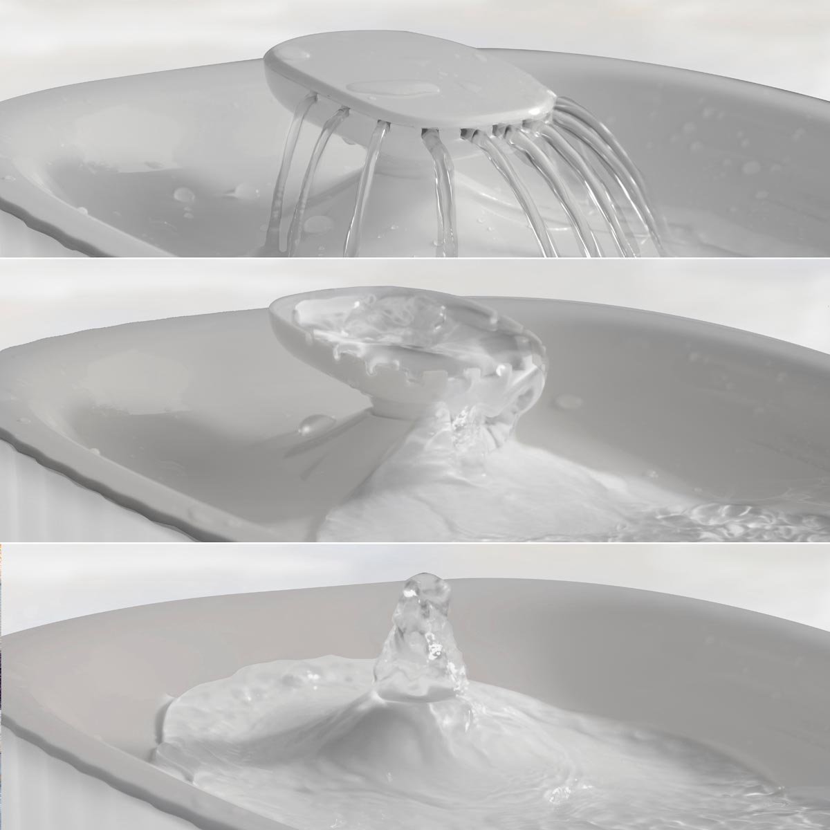 3 nastavení: 3 druhů proudu vody