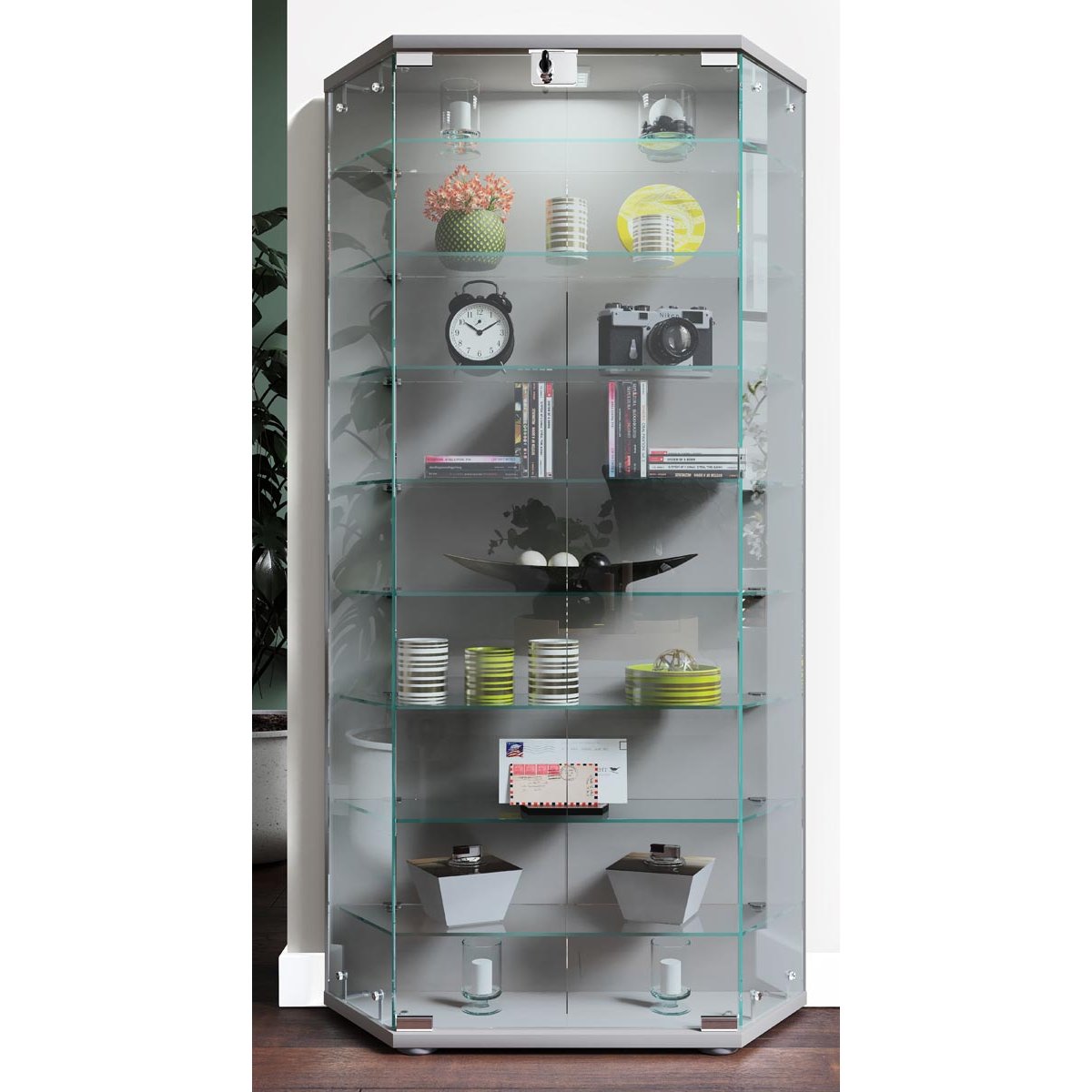 Díky osmi skleněným policím poskytuje tato vysoká vitrína přehledné uspořádání vystavených předmětů. Ideální je také jako sběratelská vitrína nebo vitrína na modely, kde bezpečně ochrání exponáty před prachem. Dvě otočná dvířka jsou uzamykatelná dvěma klíči, což zajišťuje vyšší bezpečnost.