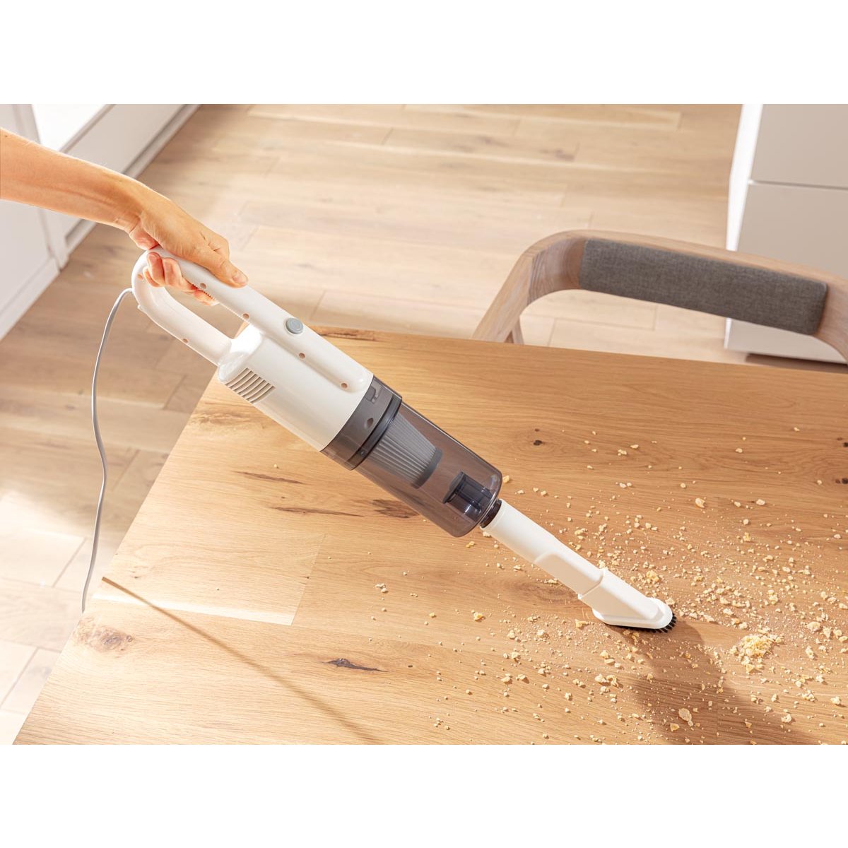 1 přístroj, dvojí čištění: tyčový vysavač s mopem umožňuje vysávání a vytírání v jednom kroku nebo samostatné výkonné vysávání. Je vhodný pro všechny tvrdé podlahy a zajišťuje důkladné a efektivní čištění. Součástí je přídavný nástavec na čištění spár. Vysavač s mopem lze snadno použít také jako praktický ruční vysavač – ideální do auta, na pohovku i do hůře dostupných míst.