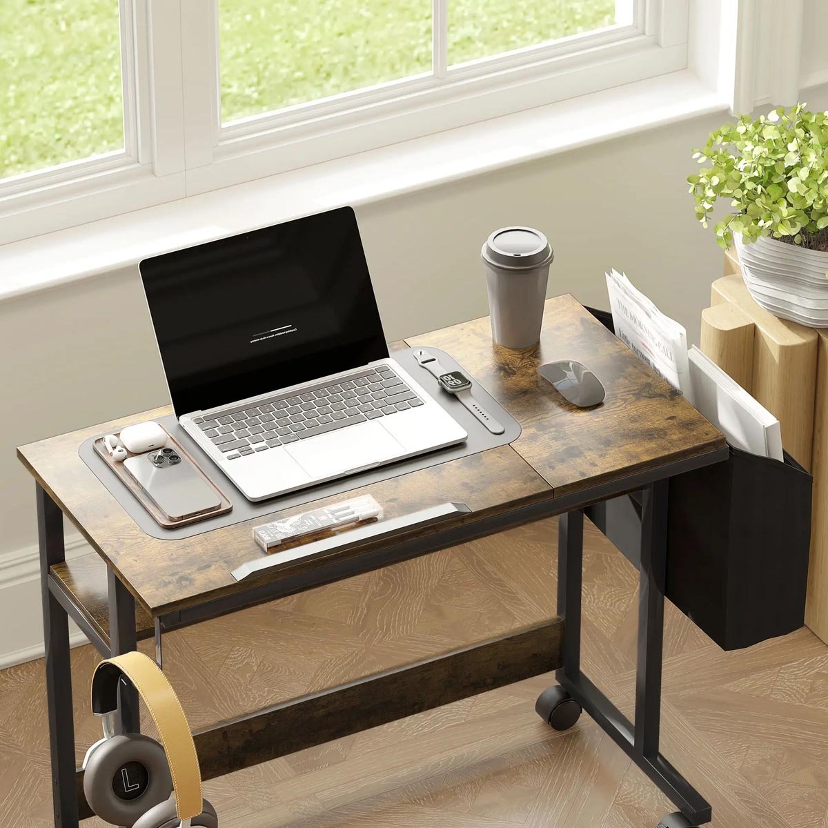 Pracovní plocha se skládá ze dvou desek, přičemž větší je nastavitelná do pěti úhlů sklonu, ideální pro psaní, kreslení nebo práci na notebooku. Díky čtyřem kolečkům, z nichž dvě jsou vybavena brzdou, lze tento kancelářský stůl snadno přesouvat podle potřeby. Skvěle se hodí jako funkční kancelářský nábytek do domácí pracovny i studentského pokoje.