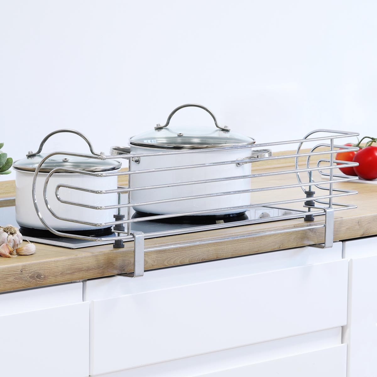 Jednoduše nasaďte na pracovní desku, utáhněte spodní šroub, upevněte jej prostředním šroubem a zajistěte horním šroubem. Rychle a jednoduše, bez použití nářadí. Tuto mřížku můžete použít také na okenní parapety nebo police. Při znečištění se snadno čistí vlhkým hadříkem.