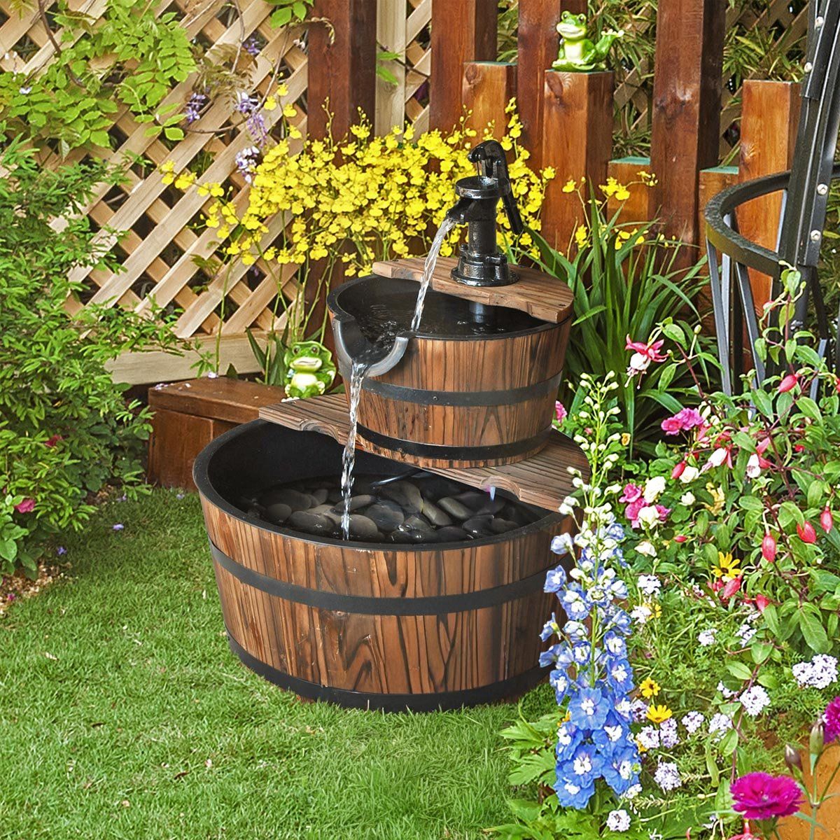 - Dvoupatrová fontána s dřevěnými vědry a pumpou