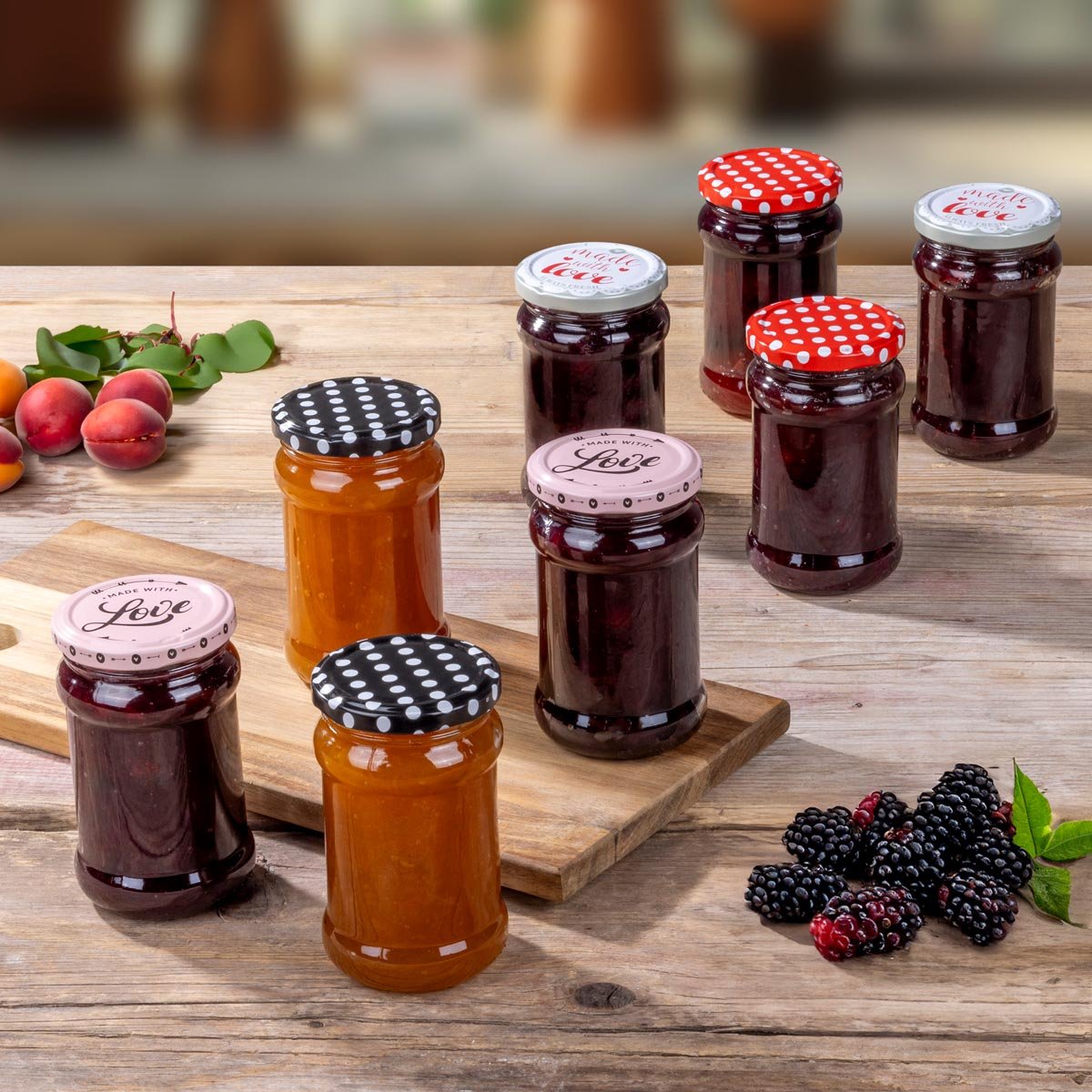 Víčko s otočným uzávěrem a veselým barevným motivem sklenici při zavařování bezpečně uzavře.