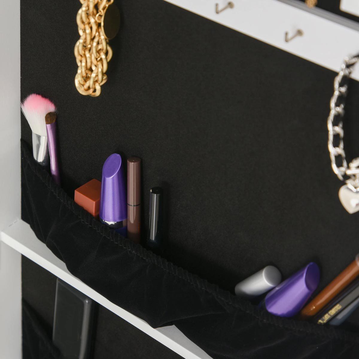 Tato elegantní šperkovnice je ideální pro organizaci a uložení oblíbených prstenů, náhrdelníků, náramků, kosmetiky a dalších doplňků. Dvířka jsou po obvodu osazena 24 LED žárovkami, které zajistí jasné světlo při líčení či vybírání šperků. Díky tomuto stylovému a funkčnímu kousku budete mít vše přehledně na jednom místě a ráno snadno vyberete správný šperk i make-up bez zdlouhavého hledání.