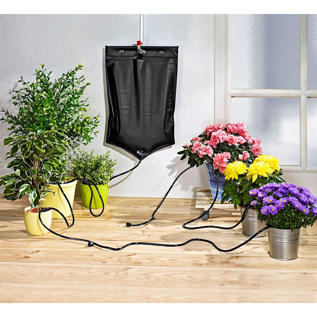 Co je možné na velkém poli, může fungovat i v malém květináči: cílená, přesná závlaha na delší dobu, aniž byste se museli říkat sousedům. K tomu postačí jednoduše zastrčit zavlažovací koncovky až do 7 květináčů a propojit hadici s 5 litrovým vakem. Odtud poteče voda přímo do květináčů. Množství vody lze jednotlivě regulovat.