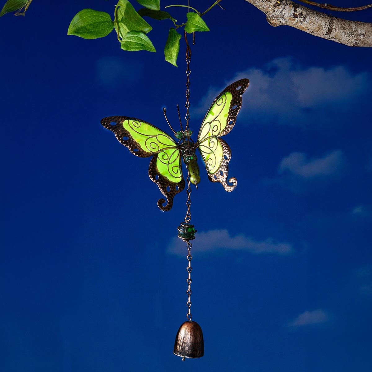 Tato harmonická, lehká zahradní dekorace motýl s malým zvonkem vytváří jemné zvuky s každým vánkem. Krásní motýli jemně "létají" ve vánku díky kymácejícím se spirálovým pružinám.